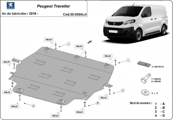 Aluminium motor, kapcsolószekrény védőlemez Peugeot Traveller (2016-2026)