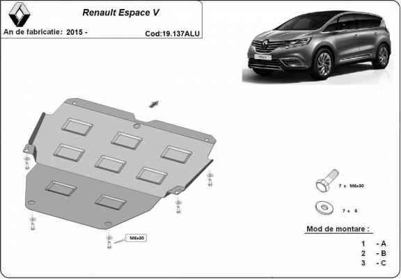 Aluminium motor, kapcsolószekrény védőlemez Renault Espace (2015-2026)
