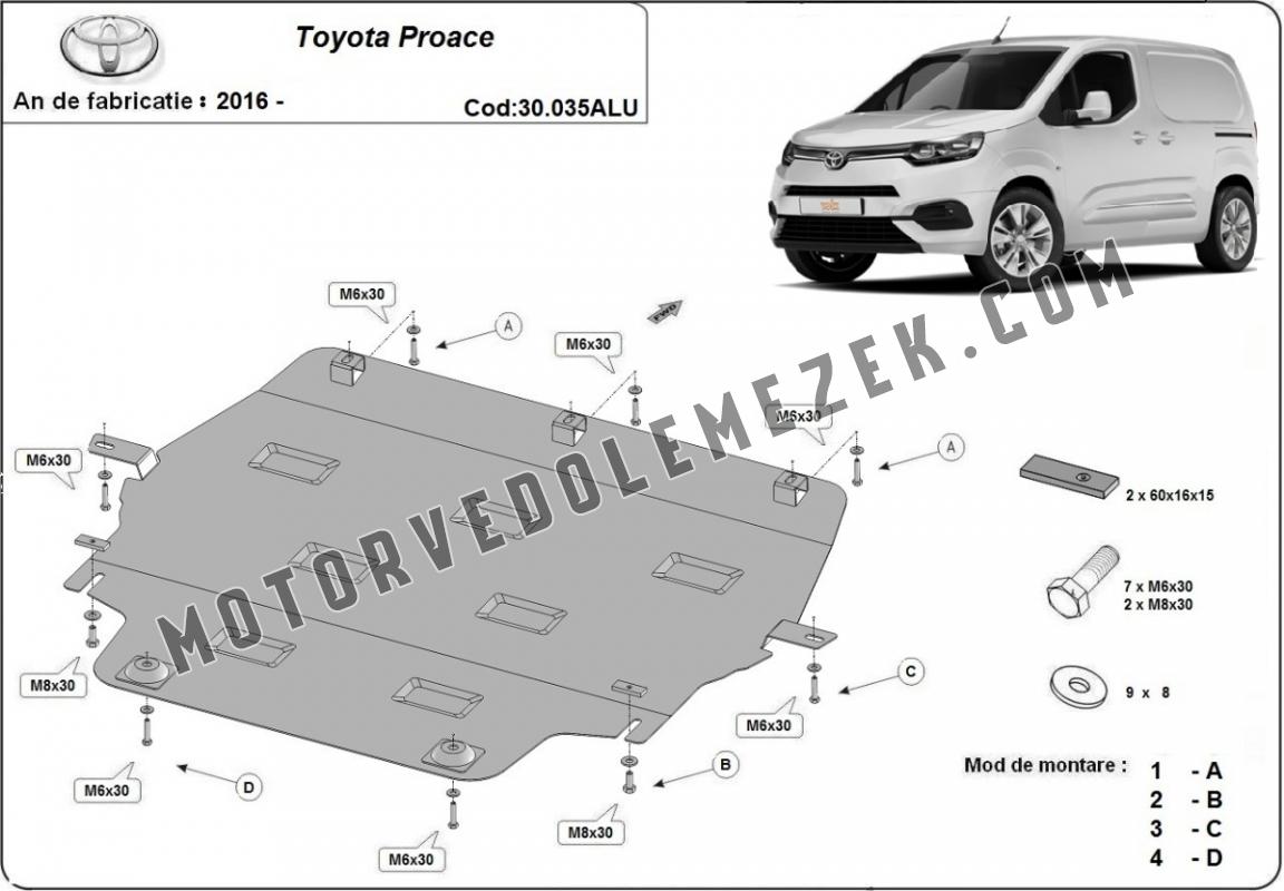 Aluminium motor, kapcsolószekrény védőlemez Toyota Proace (2016-2026)