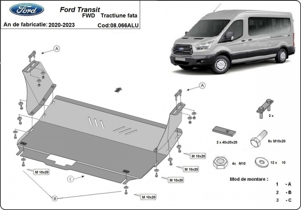 Alumínium motor, sebességváltó, hűtő, első lökhárító védőlemez Ford Transit FWD (2020-2026)
