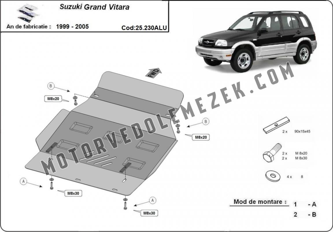 Alumínium motor, sebességváltó, hűtő, első lökhárító védőlemez Suzuki Grand Vitara (1999-2005)