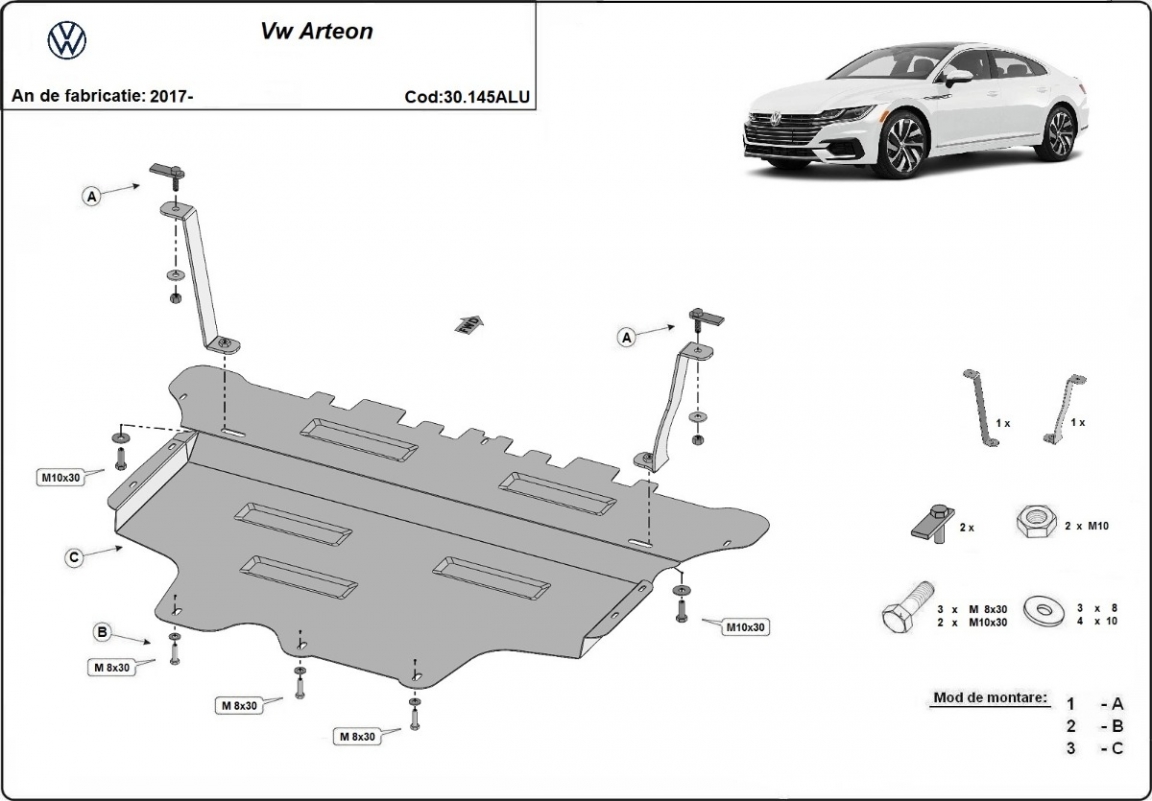 | Minden autóban gyári csavarlyukak vannak a motorvédő lemez felszereléséhez, ami nagyon egyszerűvé teszi a felszerelést. Ezt megteheti saját maga, vagy bármely autószervizben. |