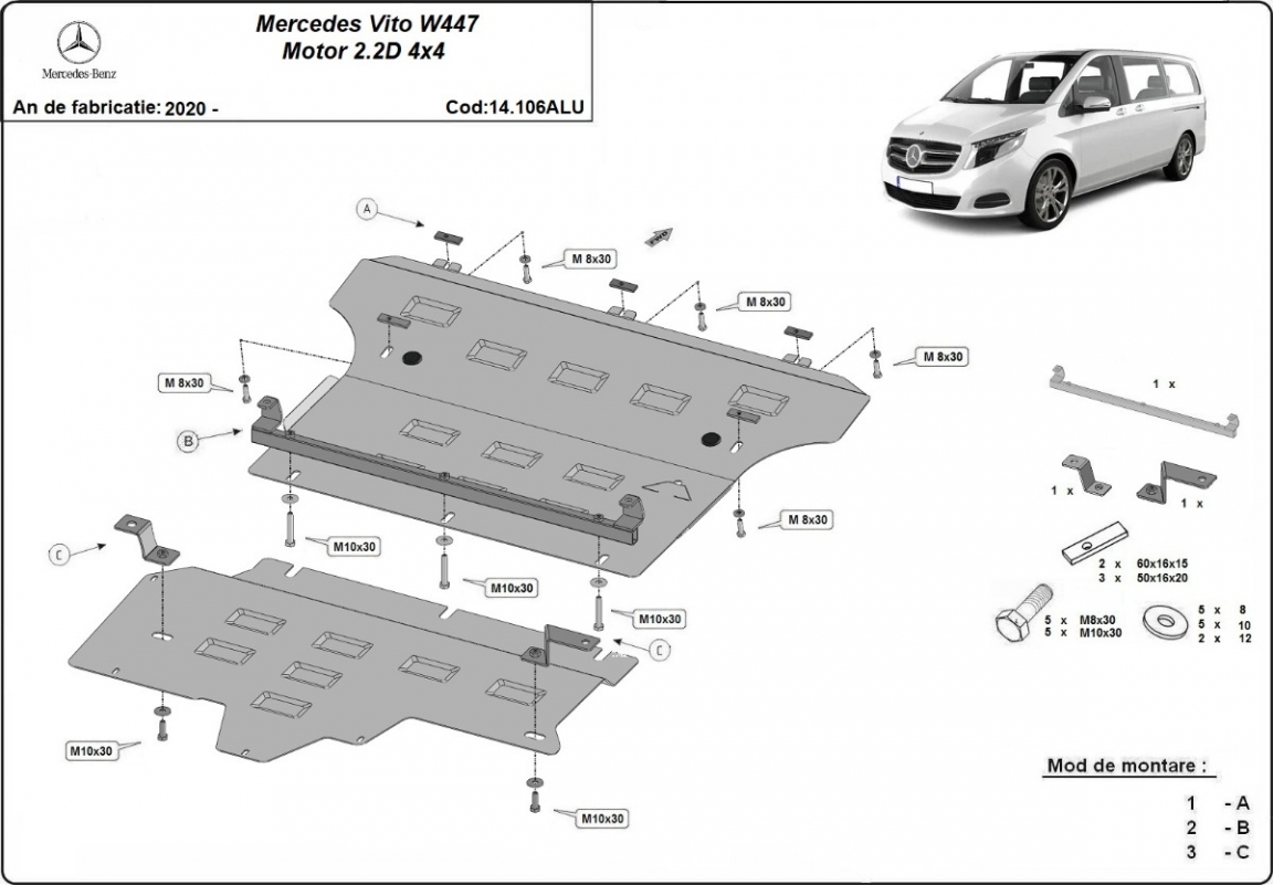 Aluminum motor, kapcsolószekrény védőlemez Mercedes Vito W447 (2020-2026)