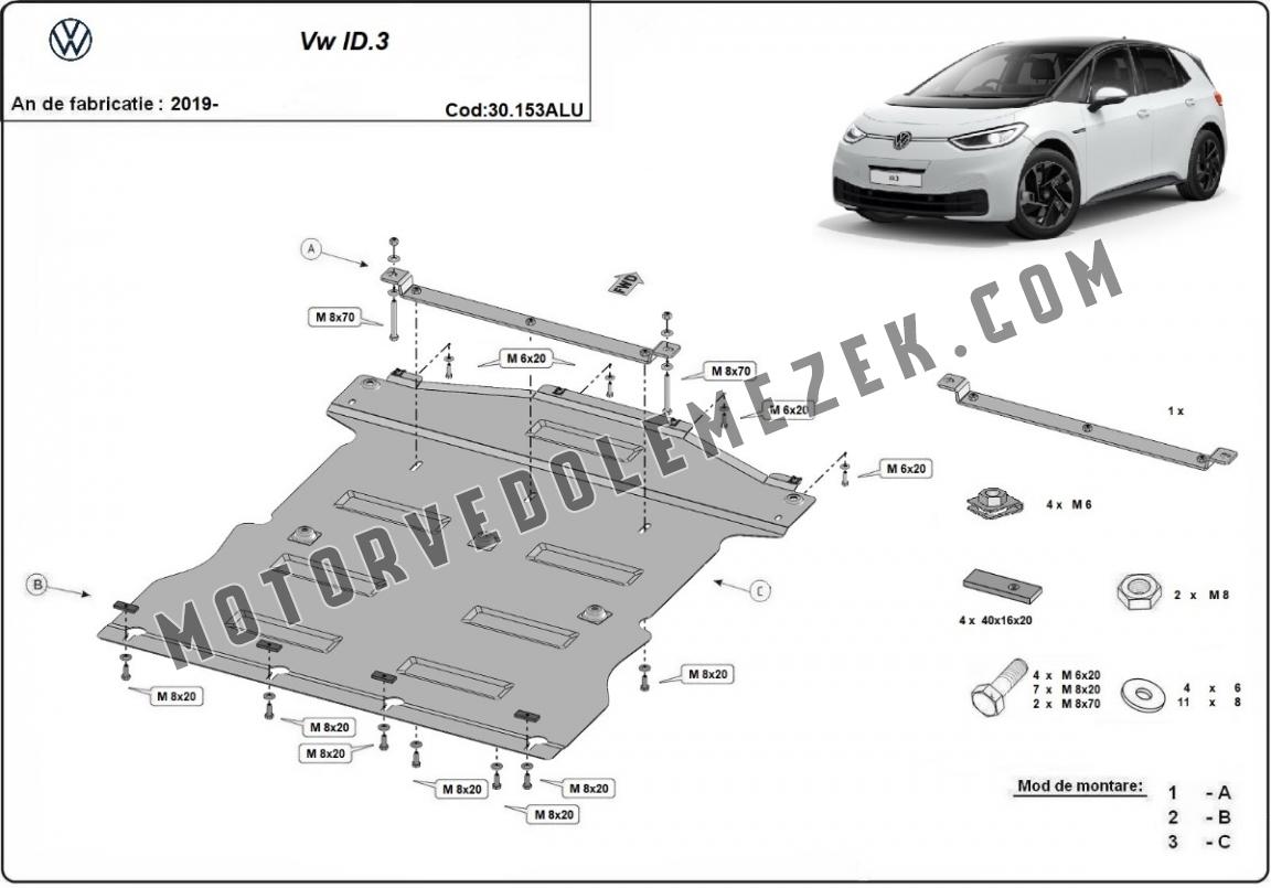 Aluminum motor, sebbeségváltó, hütő, első lökhárító védőlemez Volkswagen ID.3 (2019-2025)
