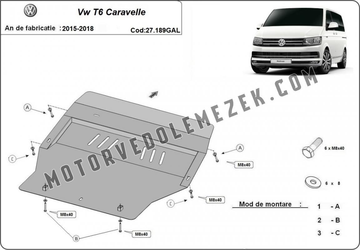 Galvanizált acél motor, sebbeségváltó, hütő, első lökhárító védőlemez Volkswagen Transporter T6 Caravelle (2015-2018)