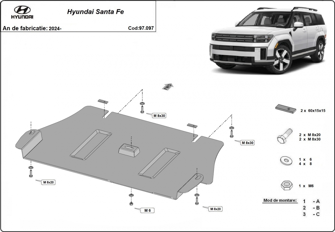 Acél motorvédő lemezünk a következőket védi: katalizátor A motorvédő lemez új, és tökéletesen illeszkedik a Hyundai Santa Fe összes 2024 és 2026 között gyártott változatához. 2 mm vastag Acéllemezből készült. Gyárilag kialakított pontokhoz csatlakozik. Méretpontos, A38 H2H acéllemez Minden szükséges tartozék és csavar a csomagban! Minden motorvédőlemezünk porszórt bevonattal van ellátva(porfestett felület), hogy megakadályozza a korróziót. Méretpontos acél lemezekből készül. |