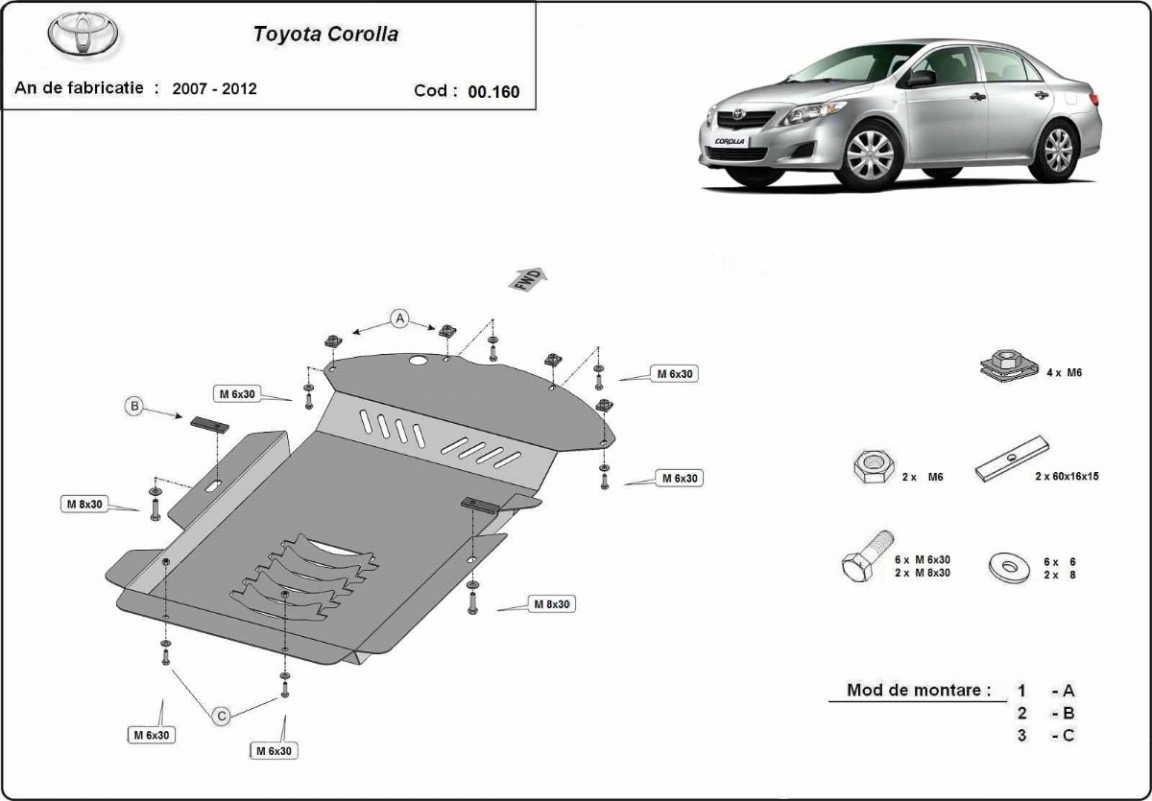 | Minden autóban gyári csavarlyukak vannak a motorvédő lemez felszereléséhez, ami nagyon egyszerűvé teszi a felszerelést. Ezt megteheti saját maga, vagy bármely autószervizben. |