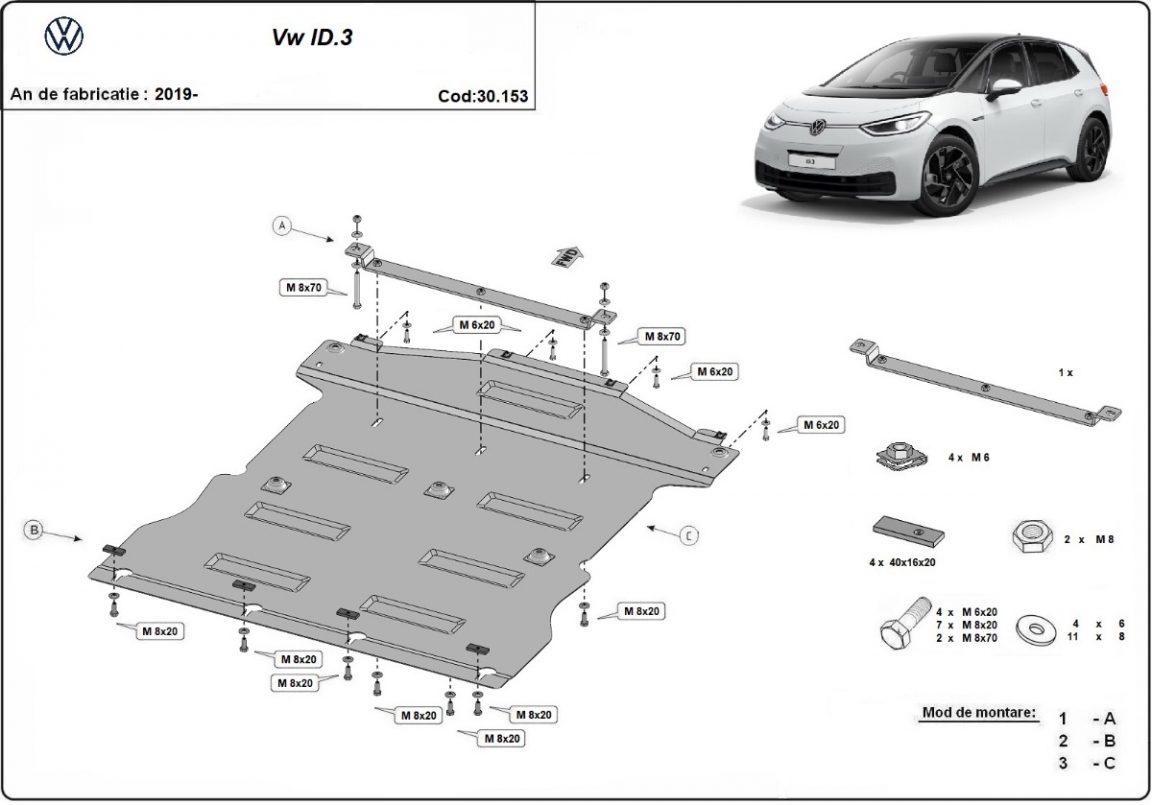 Motor, karter- védő acéllemez Volkswagen ID 3 (2019-2026)