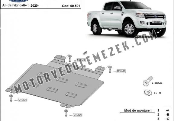 Steel gearbox skid plate for Ford Ranger (2020-2023)