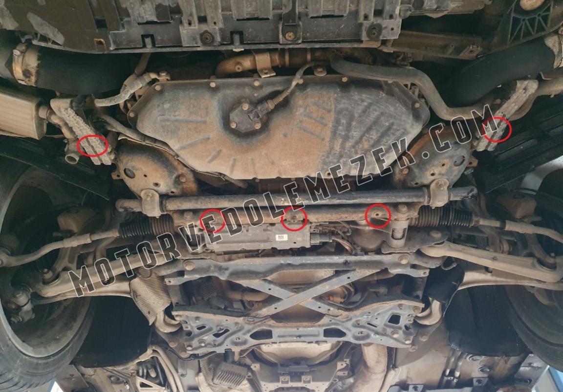 | Minden autóban gyári csavarlyukak vannak a motorvédő lemez felszereléséhez, ami nagyon egyszerűvé teszi a felszerelést. Ezt megteheti saját maga, vagy bármely autószervizben. |